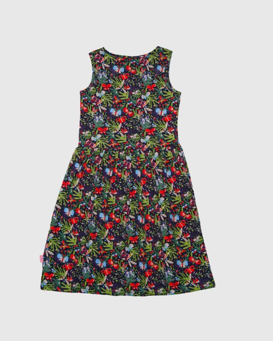 - سارافون دخترانه مدل تمام چاپ گل و پروانه