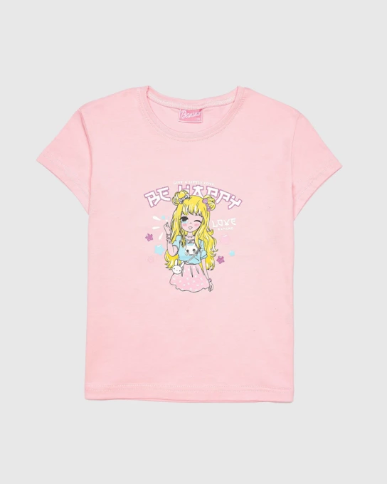 بلوز دخترانه یقه گرد مدل BE HAPPY