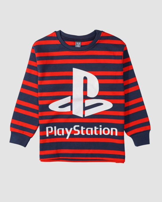 - ست بلوز شلوار پسرانه طرح راه راه PLAY STATION قرمز