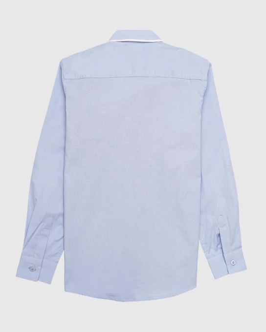پیراهن پسرانه پوپلین دو یقه رنگ آبی