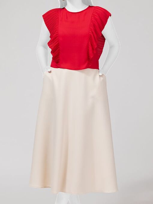 بلوز زنانه مجلسی یقه گرد کرپ حریر پلیسه ای چکاوک قرمز