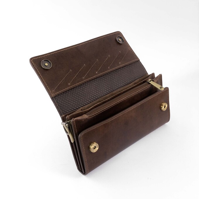 کیف پول پاسپورتی مردانه مدل D153 پتینه گردویی