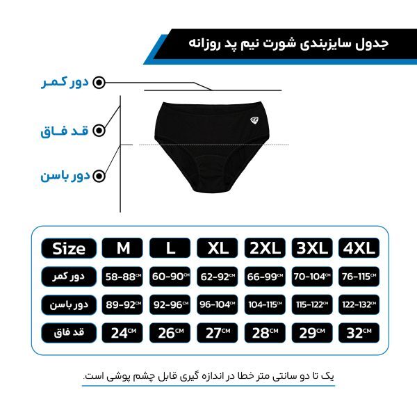 معیار سایزبندی شورت نیمپد تاپیک اندازه دور باسن و دور کمر میباشد.