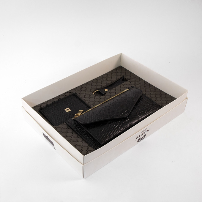 - ست کیف پول زنانه مدل X105 مشکی پیتون