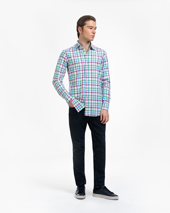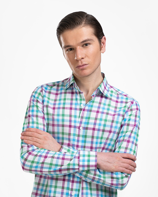 - پیراهن مردانه لینن چهارخانه کد 1819