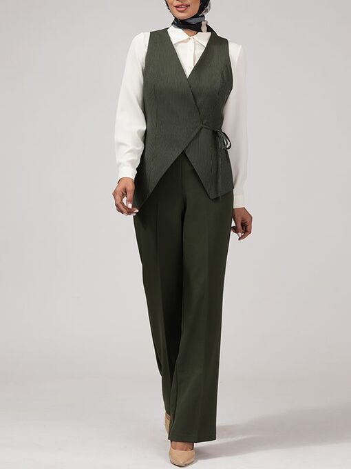 - وست زنانه پارچه دیپلمات یقه چپ و راستی آستر دار 70100 سبز