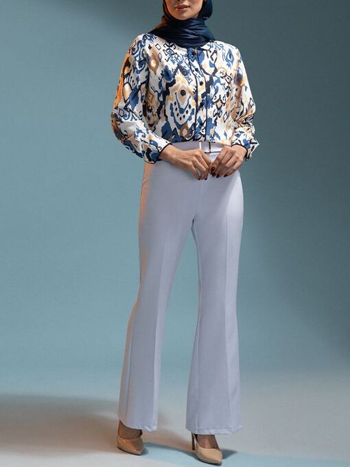 - شلوار زنانه کرپ دمپا گشاد کلاسیک دارای کمربند 10104 آبی روشن