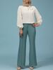 - شلوار زنانه پارچه ای کرپ کنزو از بالا گشاد ریزشی 10106 سبزآبی