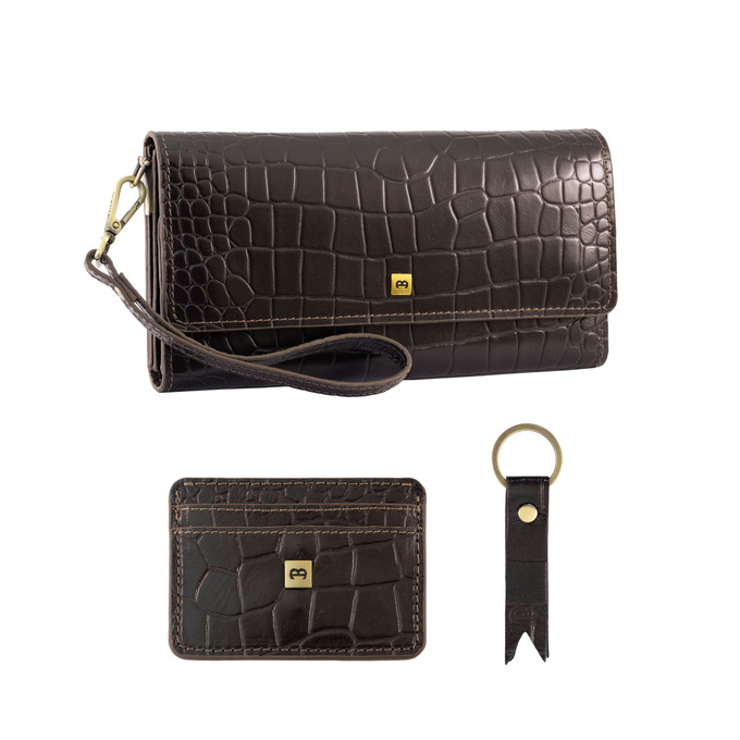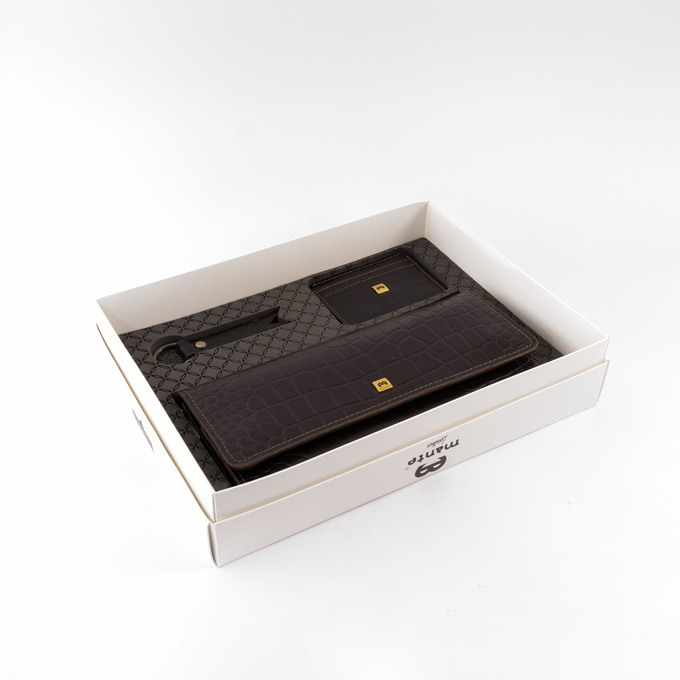 - ست کیف پول پاسپورتی مردانه مدل Y102 کرو قهوه ای سوخته
