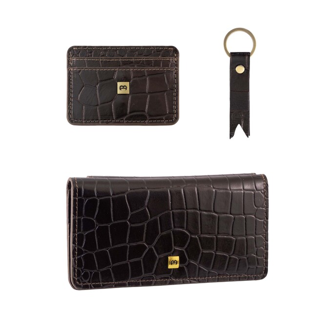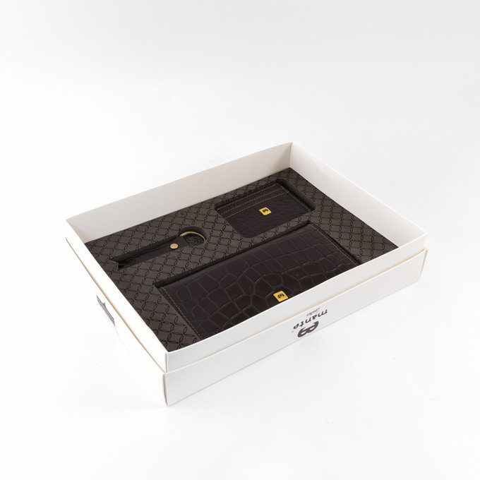 - ست کیف پول کتی مردانه مدل Y109 کرو قهوه ای سوخته