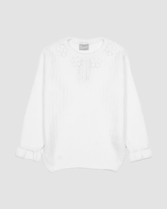 پلیور بافت دخترانه بانی نو طرح پنج گل شیری