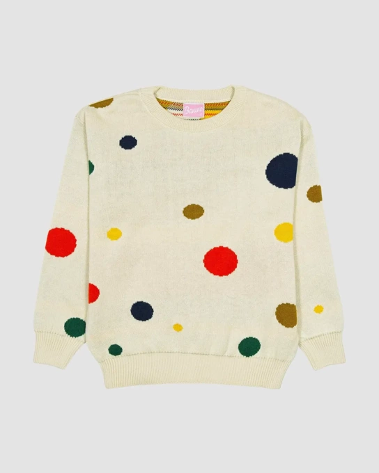 پلیور بافت دخترانه بانی نو طرح توپی کرم
