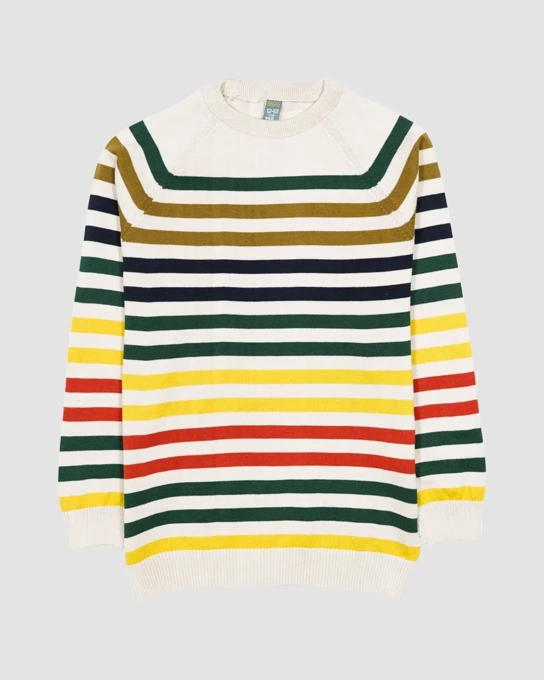 - پلیور بافت پسرانه بانی نو طرح یقه گرد راه راه کرم