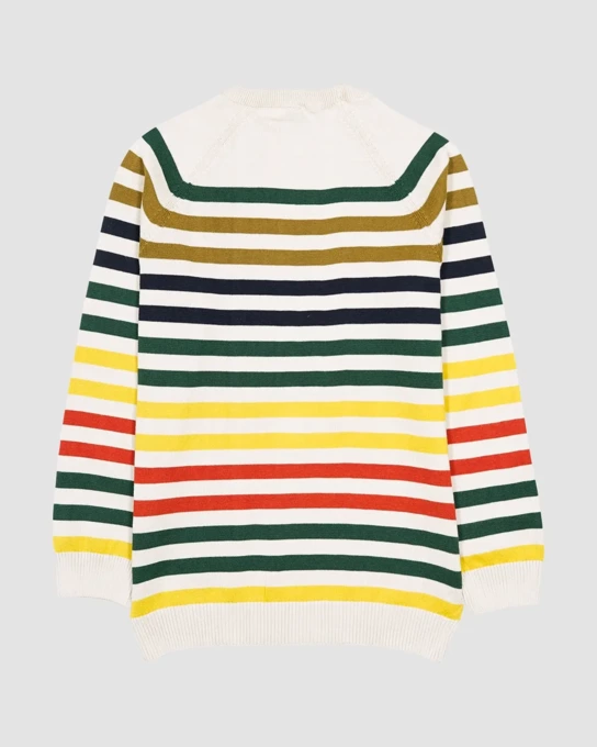 پلیور بافت پسرانه بانی نو طرح یقه گرد راه راه کرم