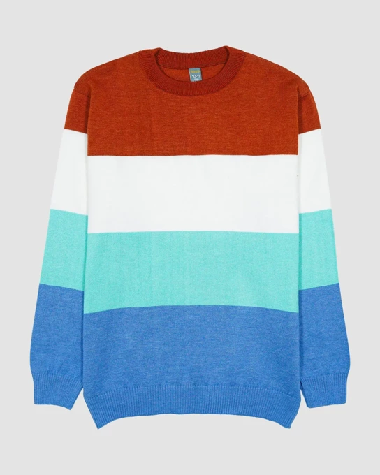 پلیور بافت پسرانه بانی نو طرح راه راه پهن سبز ابی