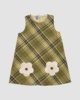 - پیراهن دخترانه بانی نو طرح چهارخانه دو گل کرم قهوه ای