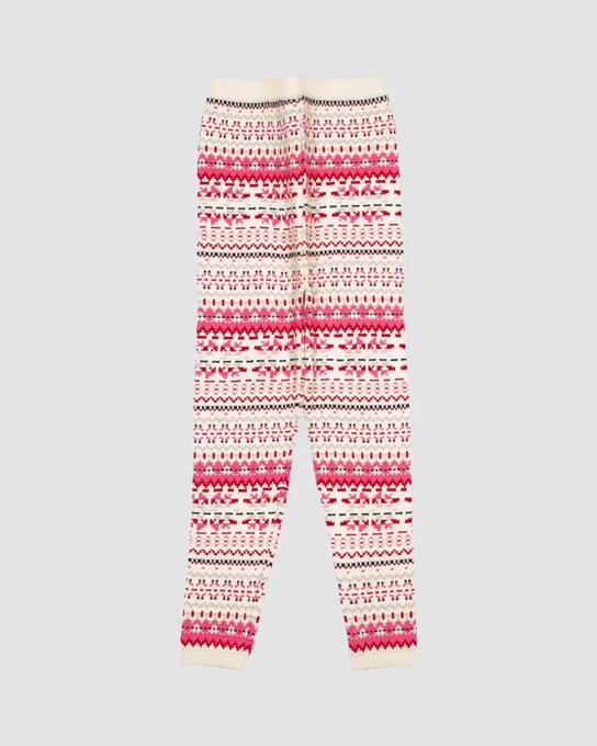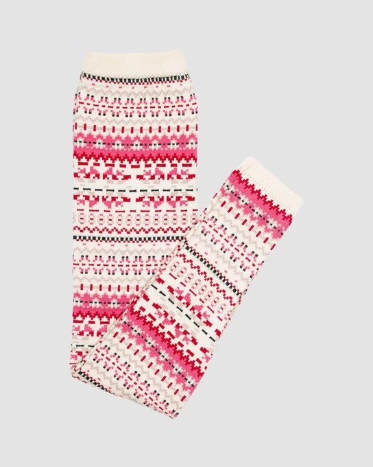 - شلوار بافت دخترانه بانی نو طرح دار صورتی سفید