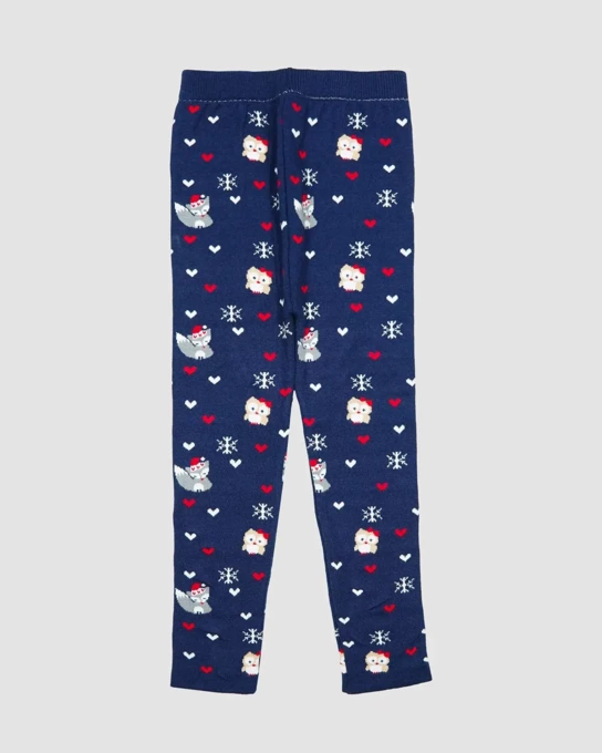 شلوار بافت دخترانه بانی نو طرح قلب سرمه ای