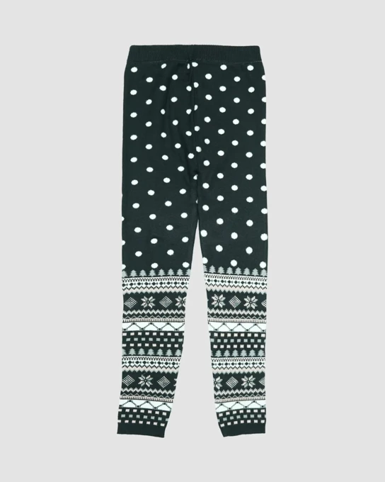 شلوار بافت دخترانه بانی نو طرح توپی مشکی سفید