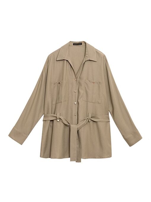 - تونیک زنانه ویسکوز آستین بلند یقه مردانه کژوال50102 خاکی