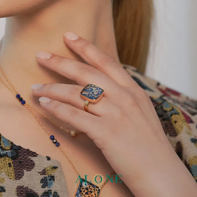 - انگشتر زنانه الون مدل مربع رینگی چشم ببر