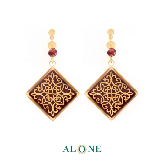 گوشواره زنانه الون مدل مربع گارنت ترنج