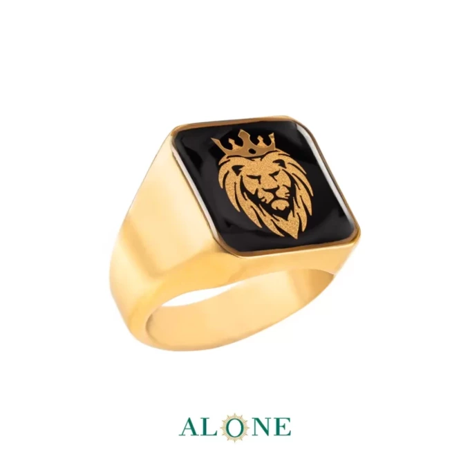 انگشتر مردانه الون مدل انیکس مربع طرح شیر