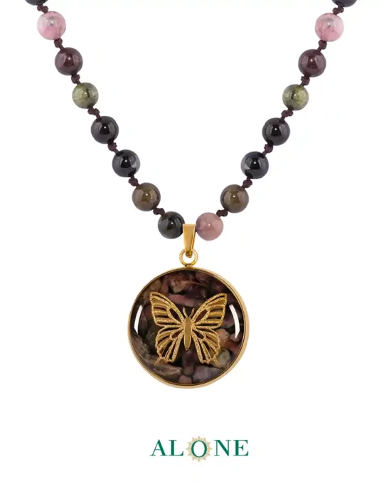 گردنبند زنانه الون مدل پروانه تورمالین
