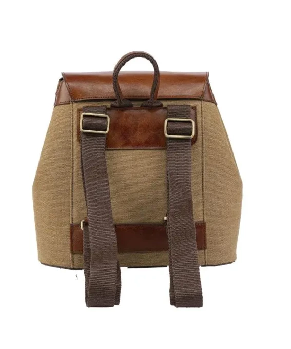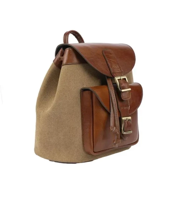 رویه کیف ساخته شده از ترکیب برزنت و چرم طبیعی نرم و مقاوم، یراق آلات فلزی با ثبات رنگ بالا، آستر داخلی نرم و مقاوم از جنس پارچه، طرح چاپی لوگو در قسمت جلو، سبک، جادار و مقاوم.