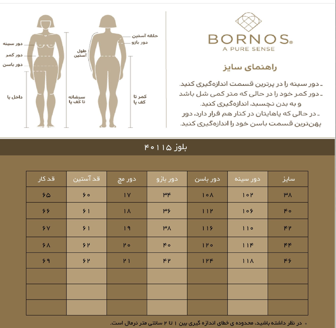 سایز لباس انتخابی برای مانکن 38 می باشد