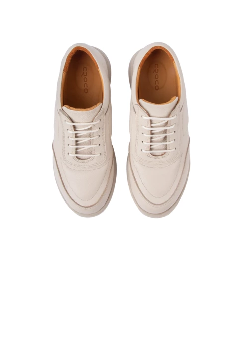 کفش کتانی زنانه چرم کروکو مدل تیانا - کرم