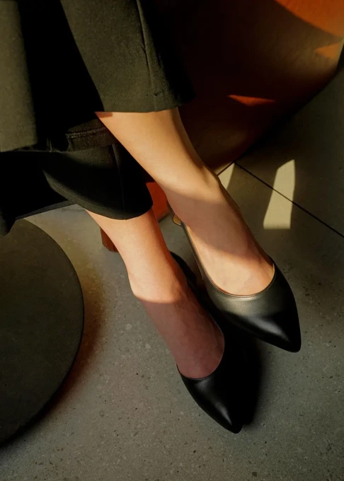 کفش مجلسی چرم زنانه مدل تیدا - مشکی