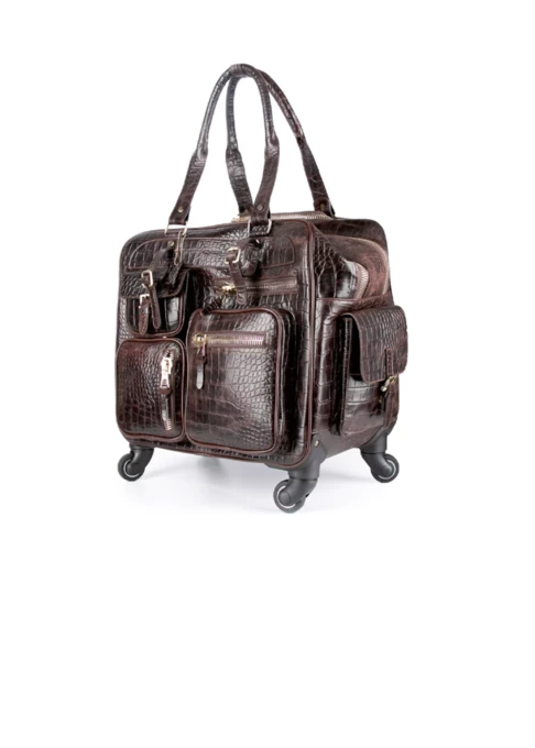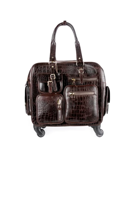 ساک مسافرتی چرخدار چرم مدل اوبرت - قهوه ای