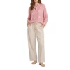 شومیز این ست شومیز و شلوار زنانه وینکلر Winkler کد W0614414SE با یقه مردانه طراحی شده که ظاهری مرتب و ساختارمند به لباس میدهد و آن را از یک شومیز ساده روزمره متمایز میکند. گلدوزی روی شومیز جلوهای ظریف و زنانه ایجاد کرده و باعث میشود ست بدون شلوغی بصری، جذابیت کافی داشته باشد. شومیز جلو دکمهدار است و دارای یک جیب در سمت راست میباشد که علاوه بر جنبه تزئینی، حس کاربردی و طراحی کلاسیک را تقویت میکند. شلوار این ست شومیز و شلوار زنانه وینکلر Winkler کد W0614414SE با کمر کشی بنددار طراحی شده که راحتی بالایی در پوشیدن ایجاد میکند و برای استفاده طولانیمدت بسیار مناسب است. وجود جیبهای کاربردی و پاچه راسته، شلوار را به گزینهای متعادل میان راحتی و ظاهر شیک تبدیل کرده است. ترکیب رنگ صورتی شومیز با رنگ کرم شلوار، فضایی ملایم، زنانه و بسیار قابل ست برای فصول معتدل سال ایجاد میکند.