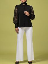 - شومیز زنانه سایز بزرگ آستین بلند حریر ژاکارد 30103 مشکی طرح دار