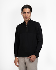 پلیور آستین بلند، بافته شده از نخ با کیفیت، دارای کشبافت در یقه، سرآستین ها و دور کمر، ثبات رنگ در شستشو